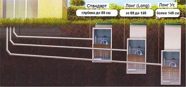 Применяется если канализационная труба от строения к септику подходит в диапазоне от 80 до 140 см.